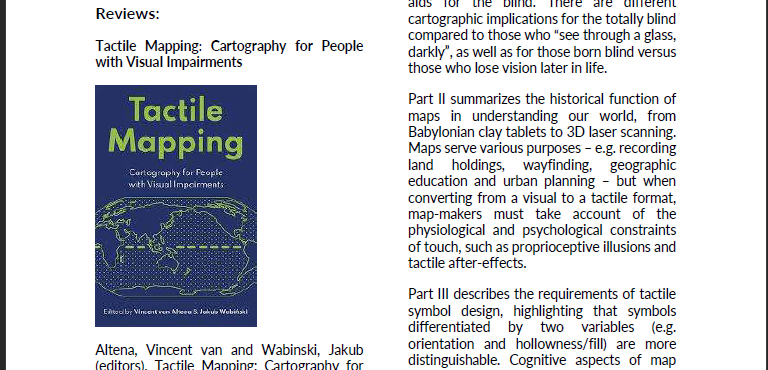 Book Review: Tactile Mapping: Cartography for People with Visual Impairments